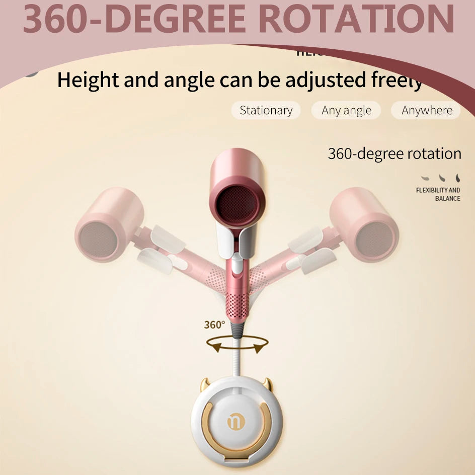 Soporte para secador de pelo manos libres de pared con ajuste de 360°