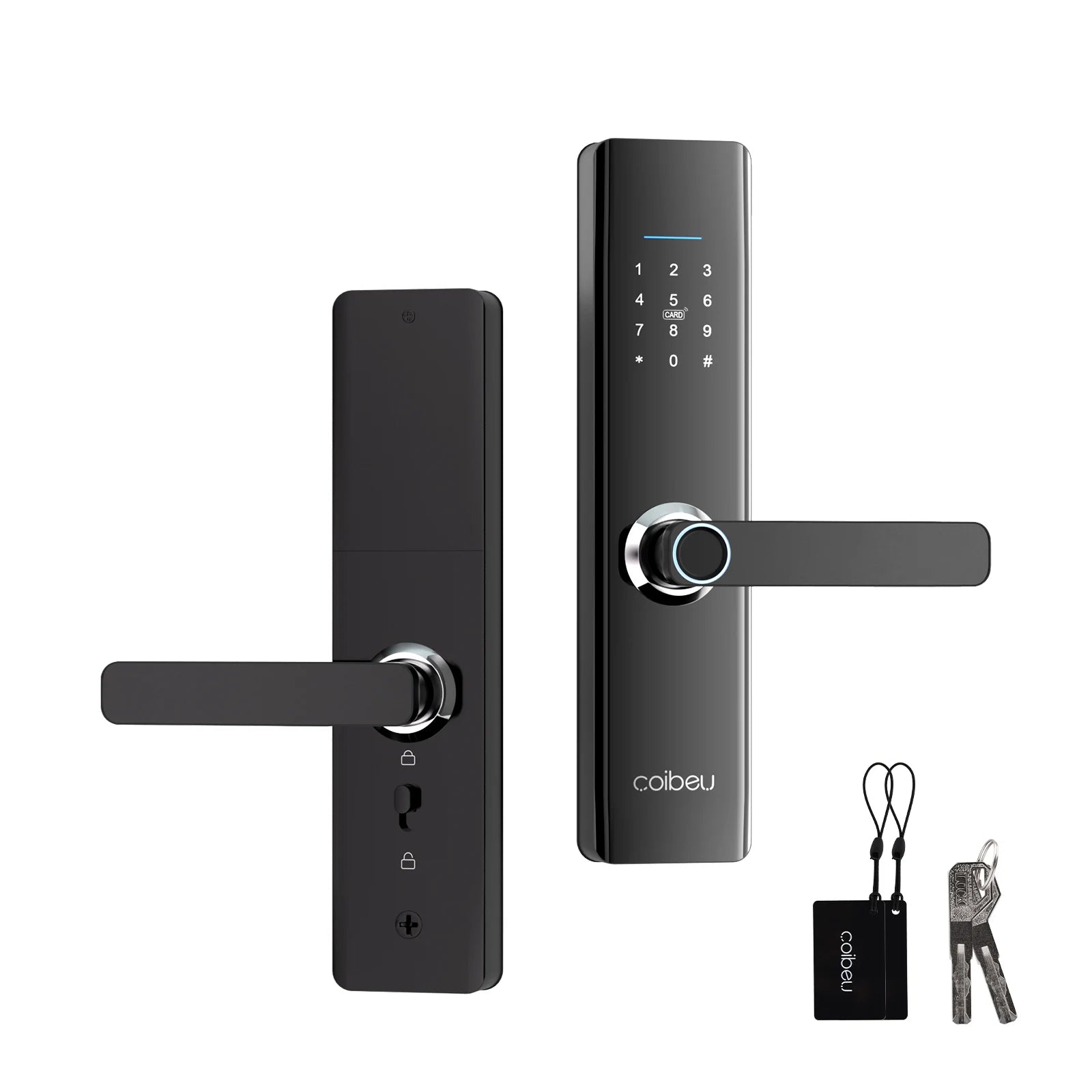 Connects to the Tuya Smart or TT Lock app for remote locking/unlocking, guest access, and logs.