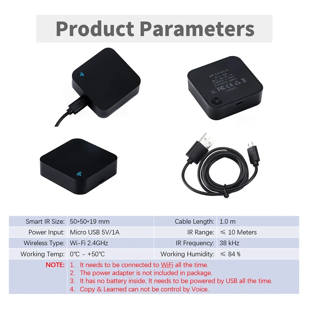 Functions Supported: TV, AC, Fan, TV Box, Audio systems, and more (IR only)